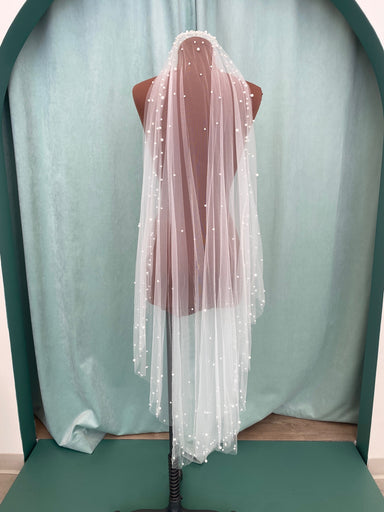 $215.00| /White Fingertip Crystal Beaded Edge Veil