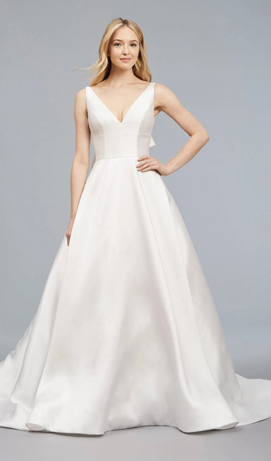 The Blue Willow "Raquel" dress is a mikado A-line gown from the Blue Willow by Anne Barge collection that features a V-neckline, a midriff insert, ...