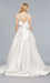 The Blue Willow "Raquel" dress is a mikado A-line gown from the Blue Willow by Anne Barge collection that features a V-neckline, a midriff insert, and a prominent couture bow on the back. It has a rear zip closure, a poly lining, and can be ordered with a detachable bow.
