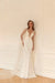 A glamorous, fully beaded mermaid wedding dress featuring intricate pearl and bead embellishments throughout, a deep V-neckline, and a, low back. Designed with thin straps and a form-fitting silhouette, this dress frequently includes detachable sheer wings for versatile styling. It offers a stunning, sparkle-heavy look, often paired with optional overskirts for added drama.