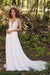 A romantic, ethereal A-line wedding dress featuring a flowing chiffon skirt, a plunging illusion Sabrina neckline with sequined lace appliqués, and a sheer bodice with a Chantilly lace underlayer. Designed for effortless, boho-chic weddings, this lightweight gown includes a V-back with covered buttons and a chapel-length train.