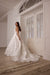 Gorgeous ballgown with jeweled belt, jacquard print and thin straps.