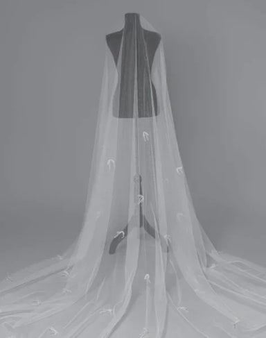Gorgeous cathedral length veil with shimmer tulle and ivory organza bows