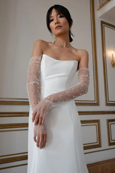 $205.00| /Detachable Tulle Bishop Sleeves with Sequin Lace Appliqués