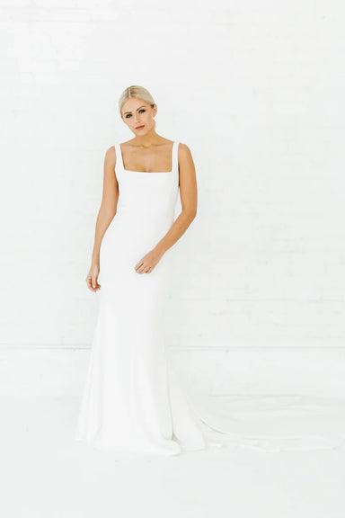 Original Price $3,300.00Current Price $2,365.00| /The Made With Love Frances Crepe is a minimalist bridal gown, celebrated for its modern elegance, crafted from signature buttery French crepe fab...
