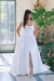 A classic A-line gown made of floral embossed jacquard fabric, featuring a modern square neckline, a front slit, and buttons that extend down the back to the hem!