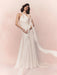 A modern, minimalist A-line gown crafted from luxurious fluid satin or crepe. It features a contemporary halter neck, a low waistline, an open back, and a detachable tie-up bow at the nape. Known for its comfortable, flowing design, it includes waist-cinching details and a dramatic skirt.