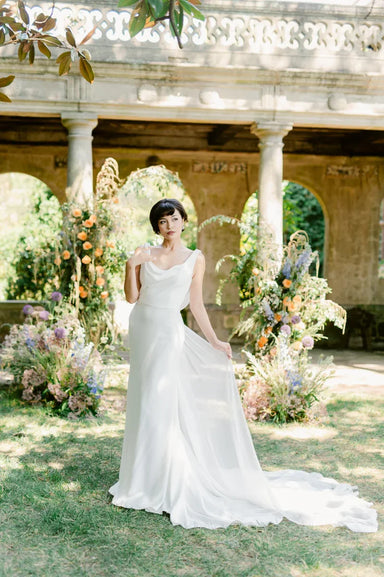 Introducing the Eva Lendel Artemida gown, a minimalist masterpiece in soft, luxurious crepe. The relaxed mermaid silhouette is accented by a classi...
