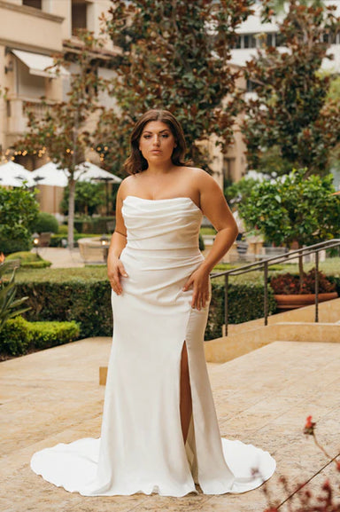 View full detailsAll Essense of Australia dresses are priced between $1,800 and $2,800.00. Essense of Australia gowns are not available to purchase online. Make an appointment today to come browse through our gown selection with your own personal bridal stylist.