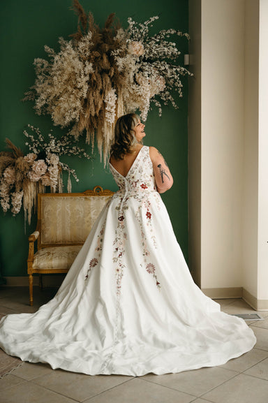 WTOO “Edie” is a classic Mikado and organza A-line wedding dress fit for any bride! This style is so light and easy to move in while looking regal...