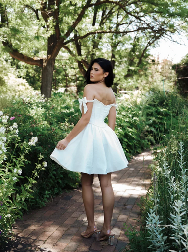 Elevate your style with Soleil James Lisa, a luxurious satin mini dress that can be worn off the shoulder or strapless. The sweetheart neckline and...