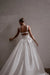 Designed for the bride who exudes confidence and elegance. Her flattering drop waist and supportive structural boning creates an elongated, cinched silhouette that beautifully transitions into a contrasting voluminous full skirt with intricate pleating to further accentuate the feminine form. A striking diamond-shaped back cut-out adds a modern touch, beautifully highlighting the skin and adding a hint of allure. The exquisite button detailing along the back offers a classic element, creating a sense of timeless sophistication that complements the overall design.